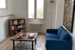 -en rez de jardin : l’accès se fait depuis la cuisine, un bel escalier permet l’accès à un grand salon de 21m2 sur parquet ouvert sur le jardin.