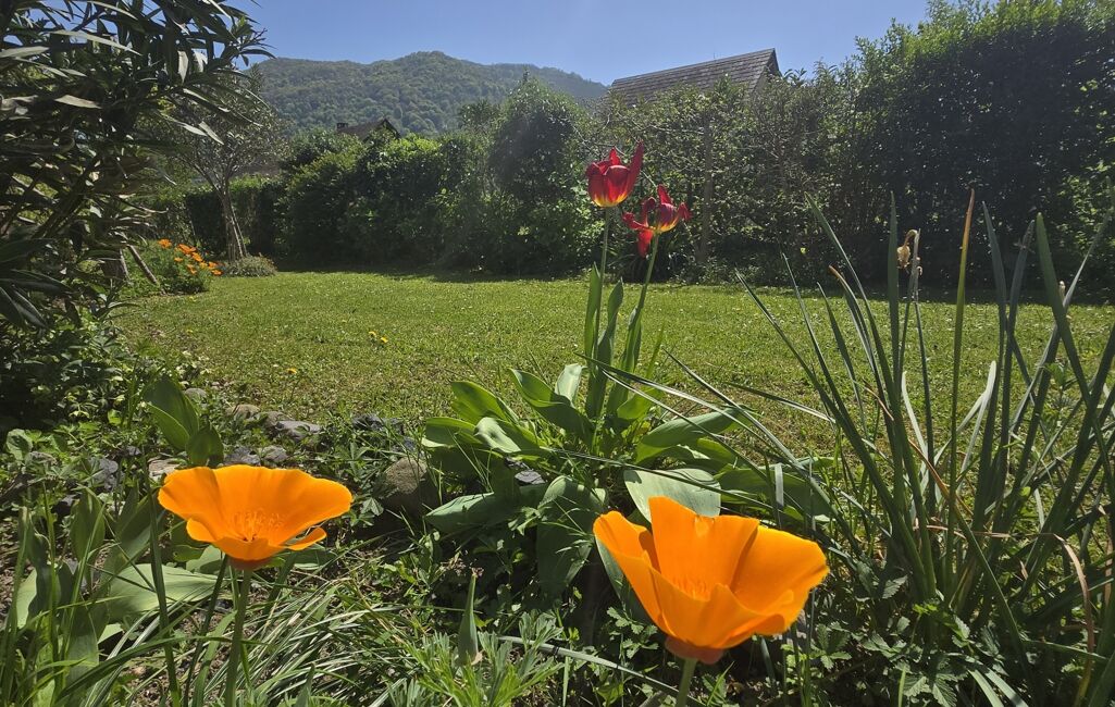 La maison bénéficie d'une exposition plein sud avec vue sur les montagnes environnantes, offrant ainsi une belle luminosité tout au long de la journée. Vous pourrez profiter du vaste terrain parfaitement entretenu pour créer un jardin, aménager une terrasse pour des moments de détente en extérieur ou même envisager l'installation d'une piscine pour les chaudes journées d'été.