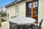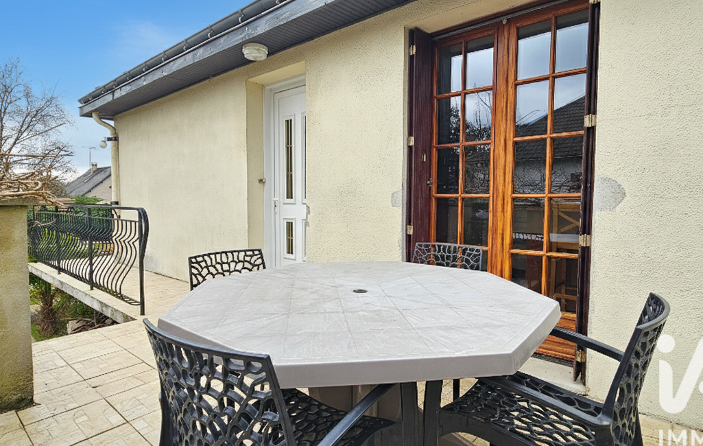 Le terrain est clôturé et arboré, avec terrasse.