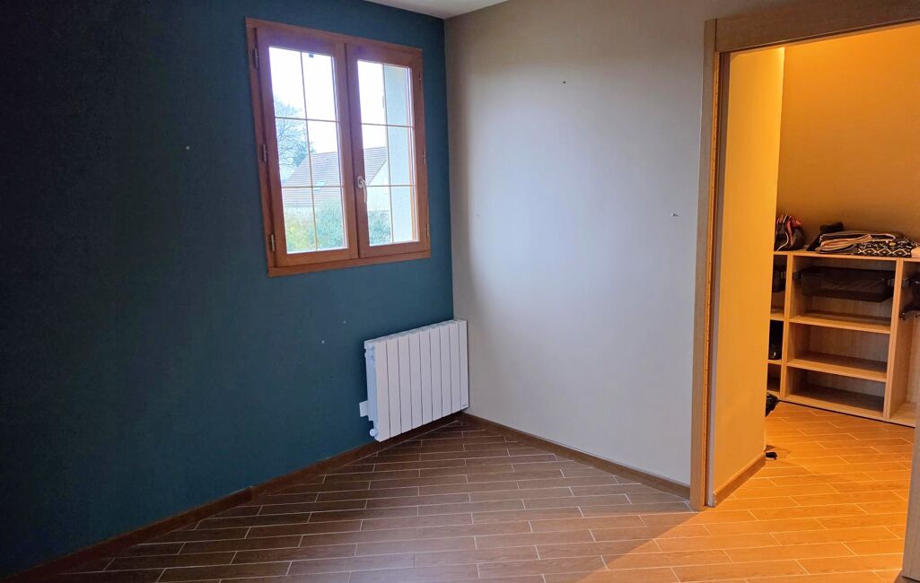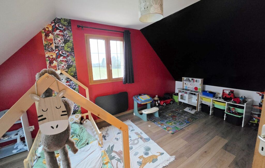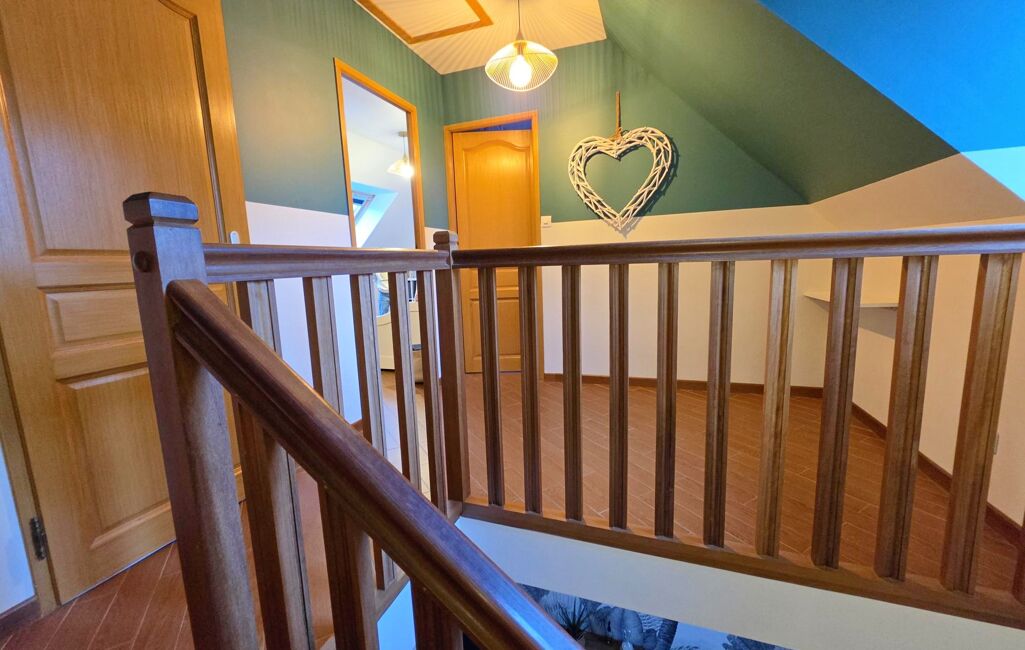 Dans un village avec école et commodités superbe pavillon en très bon état à vendre. Ce pavillon individuel avec vie de plain-pied de xxxxx m² propose les prestations suivantes : au rez-de-chaussée : entrée, cuisine aménagée et entièrement équipée ouverte sur salle/salon avec poêle à granulés, chambre, salle de douche avec double vasque, wc suspendu, dégagement, placard sous escalier. Au 1er étage avec plancher béton : palier, chambre, chambre avec balcon, dressing, salle de douche, wc, dégagement, en enfilade 2 chambres. Petit garage Cette construction de 2007 est édifiée sur un terrain plat de xxxxx m² avec terrasse carrelée, chalet bois.