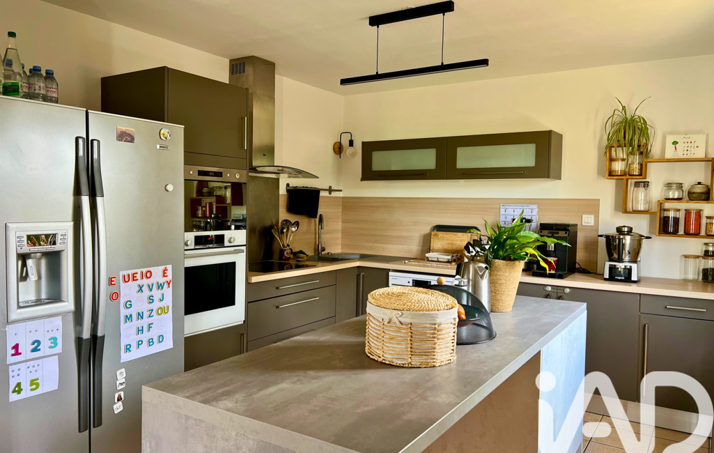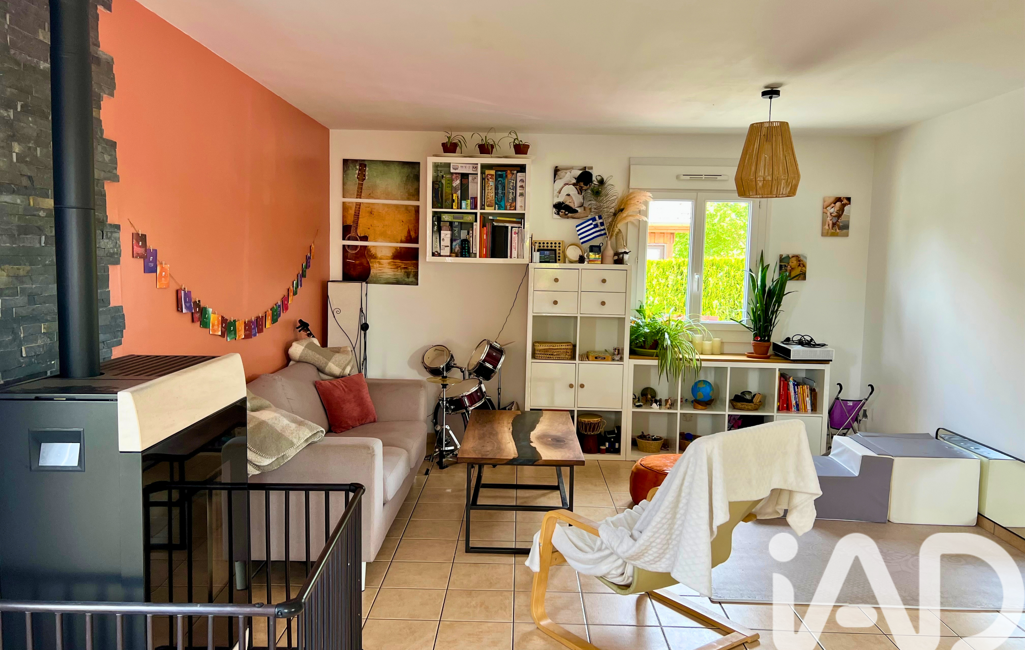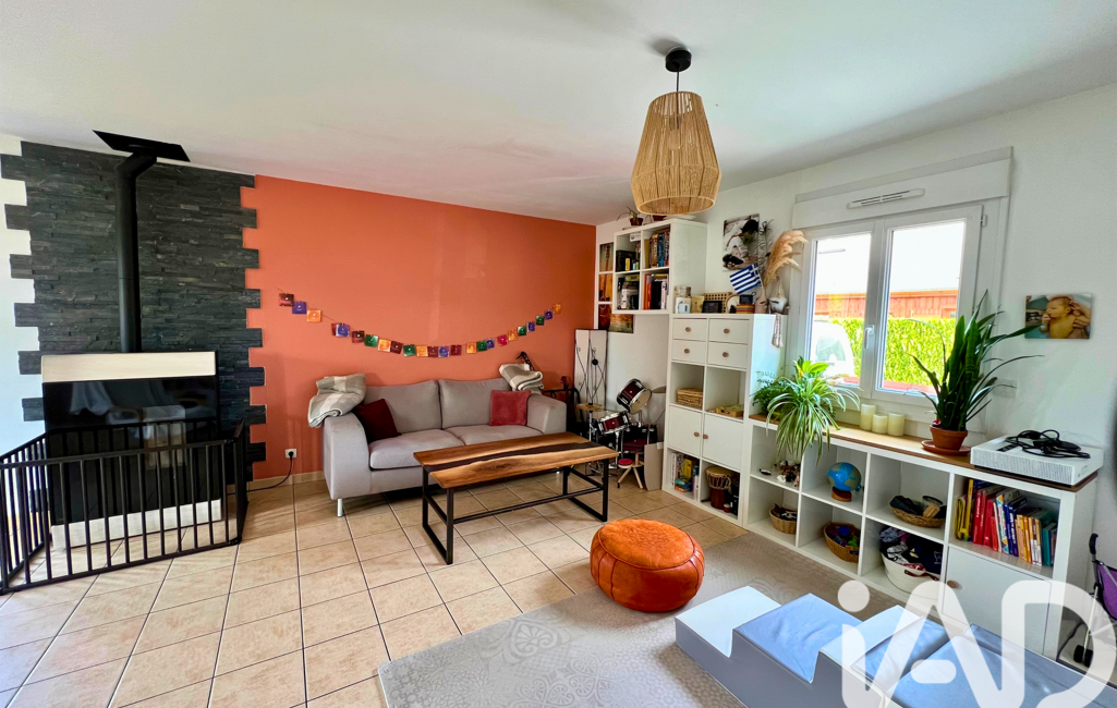 Maison familiale lumineuse offrant une vie de plain-pied avec suite parentale au rez-de-chaussée (chambre + salle d’eau), pièce de vie avec poêle à granulés et cuisine ouverte.