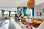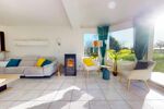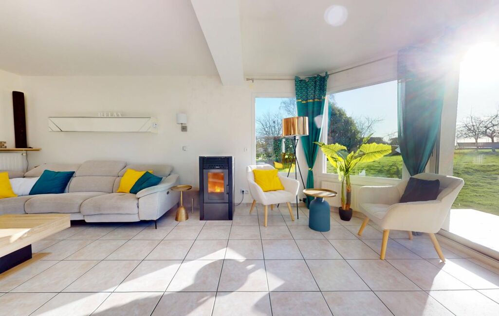 Belle pièce de vie lumineuse de plus de 40 m² avec poêle à granulés
