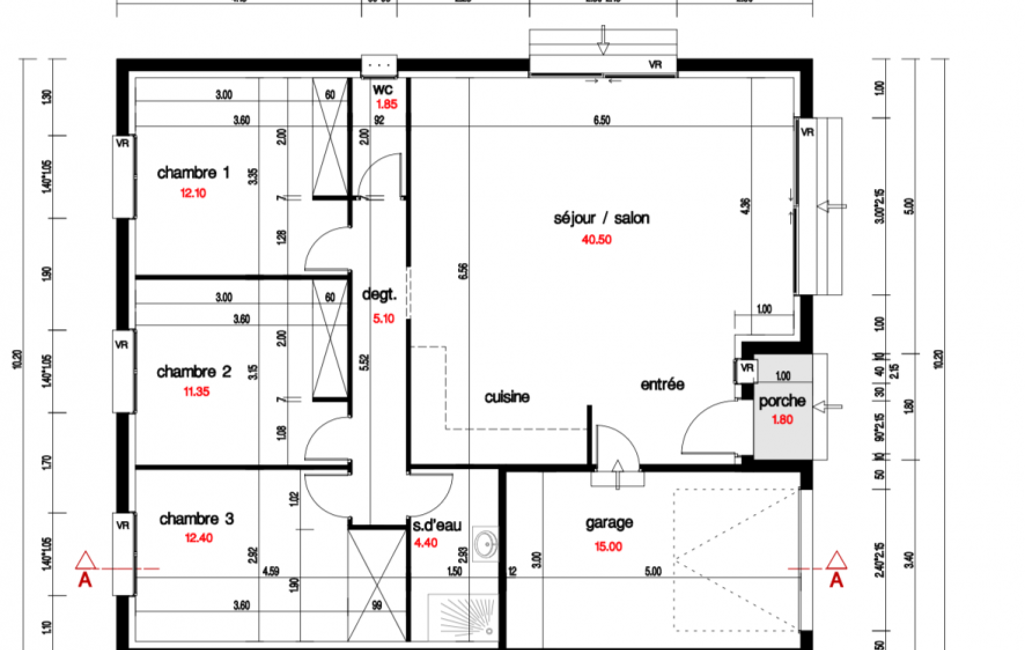 Toutes les attentes et les évacuations sont sorties pour la réalisation d'une maison de plein pied avec 3 chambres, un séjour/cuisine, une salle de bain , un wc séparé ainsi qu'un garage .