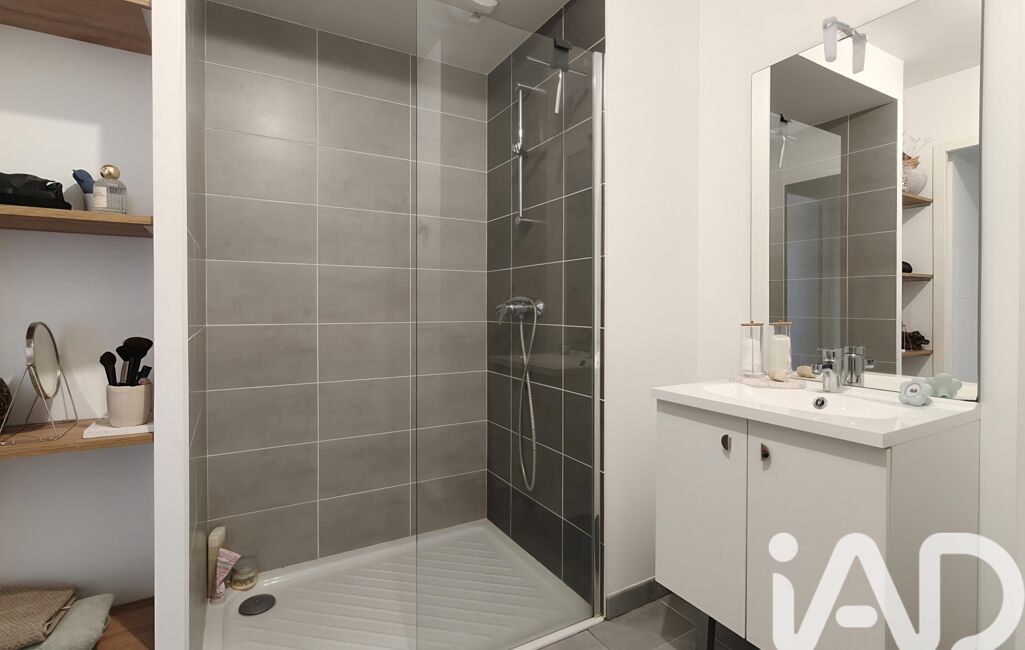 - Salle d’eau tendance, avec meubles contemporains et niche astucieuse