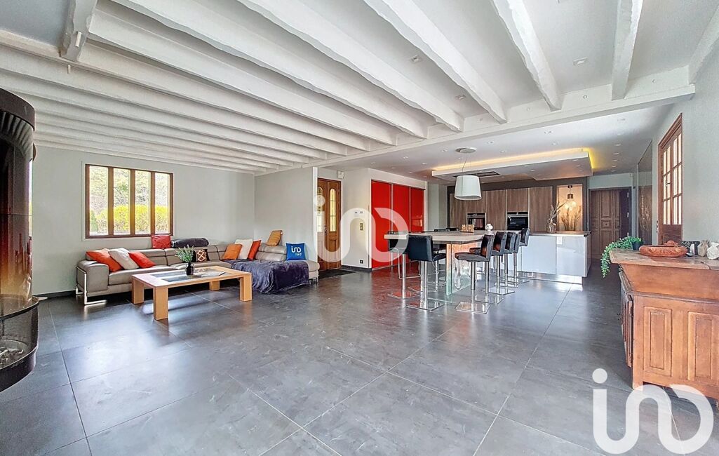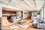 Dès l’entrée, un vaste séjour avec cuisine ouverte de plus de 70m² vous enveloppe dans une atmosphère chaleureuse, sublimée par une charpente apparente et un insert traversant. L’équilibre parfait entre modernité et authenticité.