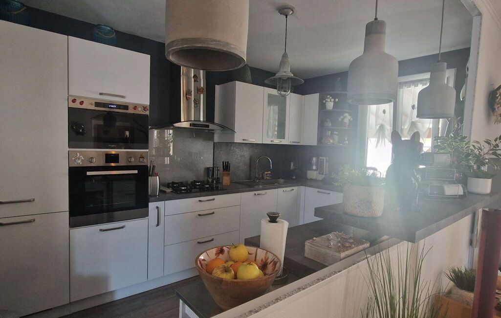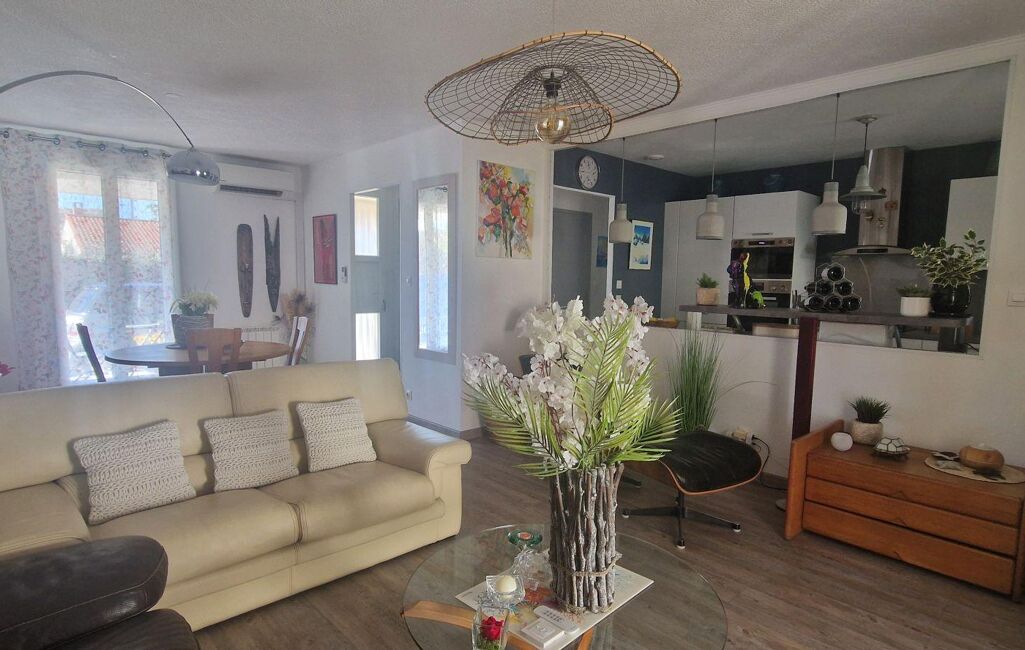 Un séjour lumineux avec cuisine ouverte, créant un bel espace de vie convivial, deux chambres confortables, une salle d'eau soignée, un WC indépendant. Ainsi qu'un garage attenant.