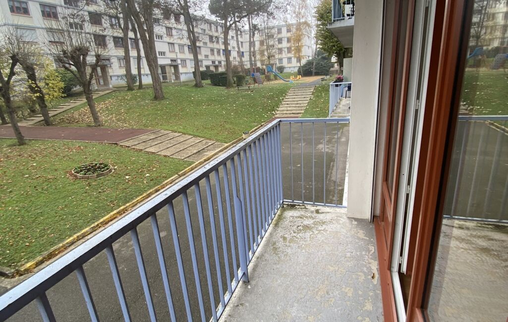 L’appartement se compose d’une entrée desservant un séjour lumineux de 16,1 m², de deux chambres de 9 m² et 11,2 m² avec placards, d’une salle de bains, de WC séparés, ainsi que d’un balcon avec vue sur le parc arboré de la résidence, très apprécié par les occupants.
