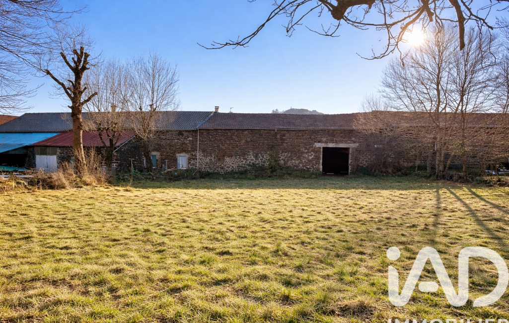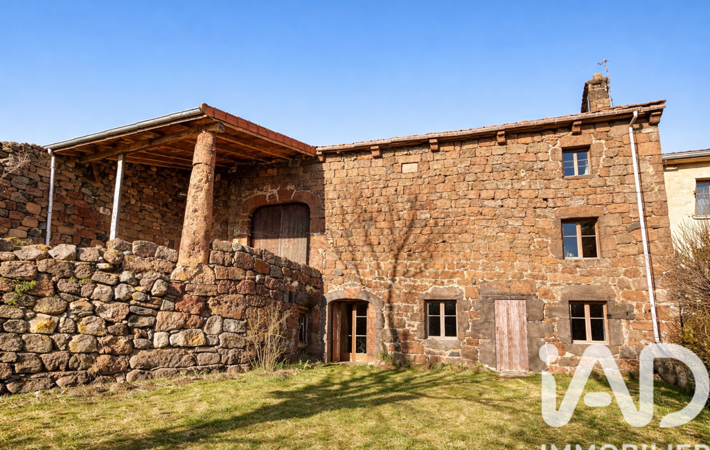 Commune de Bains, ferme de pays mitoyenne par deux pans, en pouzzolane, pierre traditionnelle, avec poutre apparente, cour plein Sud sans vis-à-vis, terrain attenant et vue dégagée.