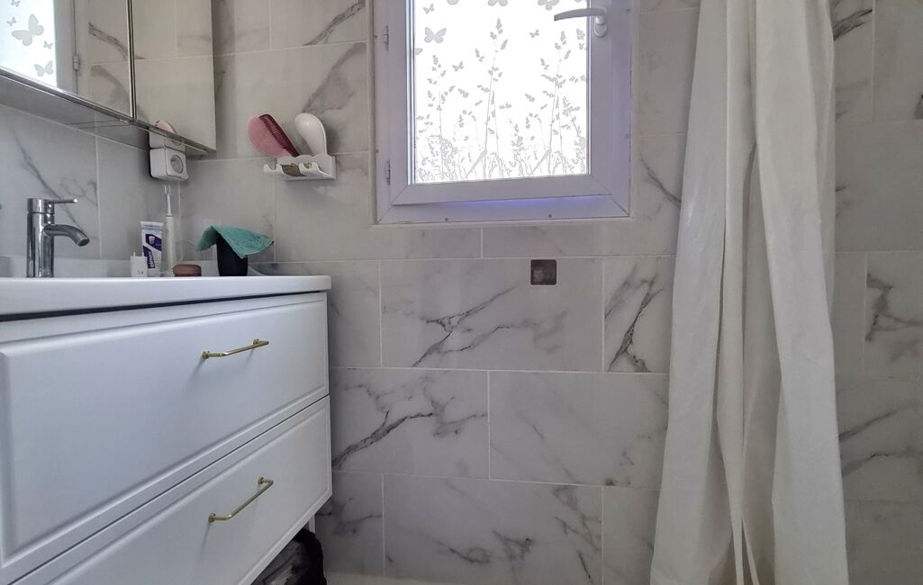 La maison se compose d’un séjour-cuisine ouvert, d’une petite buanderie avec son wc ainsi que d’une chambre avec salle d’eau privative. L’ensemble de la maison est équipé du double vitrage. Vous disposerez également d’une climatisation réversible ainsi que d’un cumulus pour l’eau chaude.