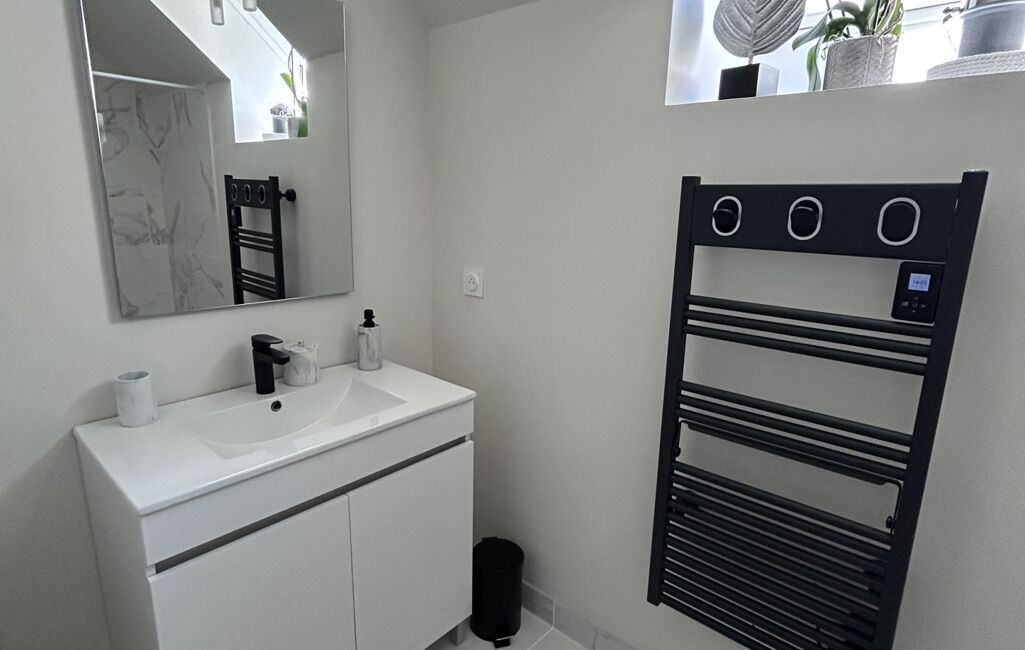 Le rez-de-chaussée propose également deux chambres, dont une avec dressing, une salle de bain avec douche et des WC séparés.