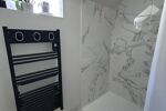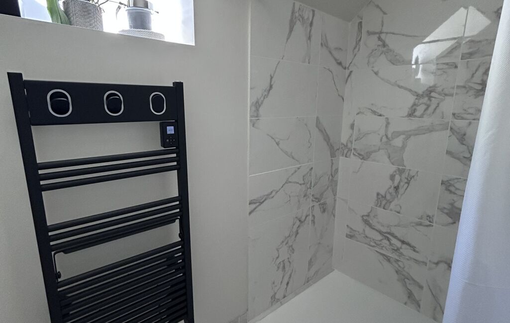À l’étage, vous trouverez une salle d’eau, un débarras et deux grandes chambres avec chacune leur dressing.