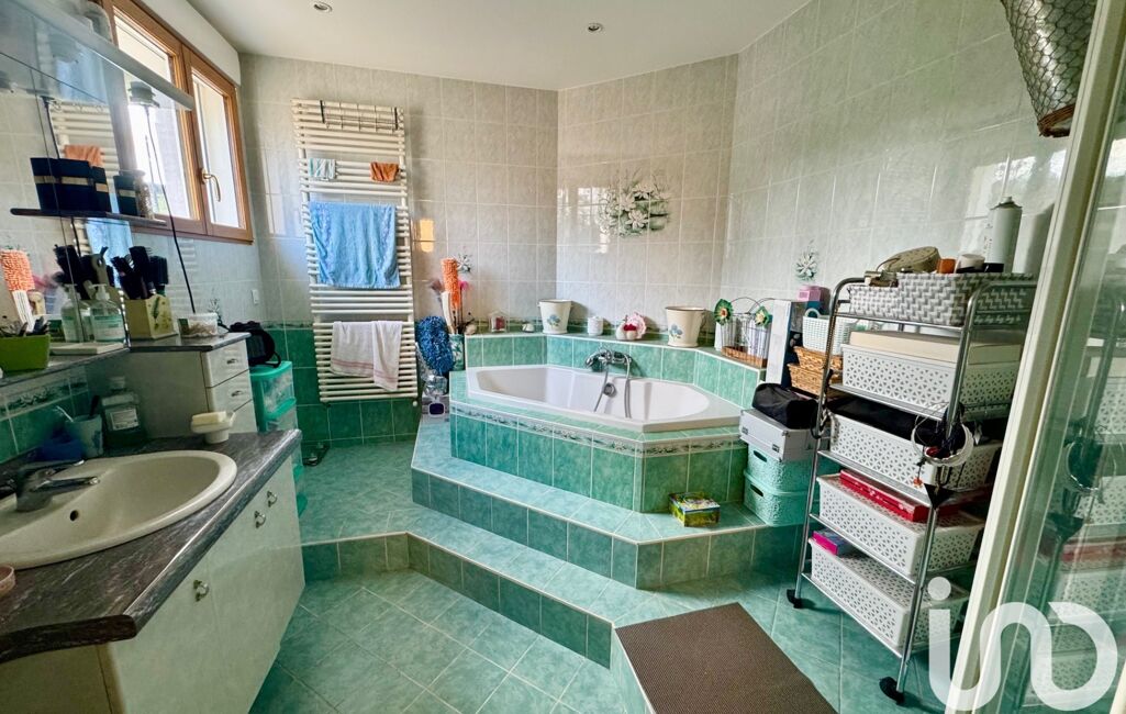 Enfin en ce qui concerne les annexes, la maison dispose d'un grand garage de 80 m² de plain pied et une mezzanine de 50 m² environ, et également de 2 caves dont la plus grande fait 50 m² environ.