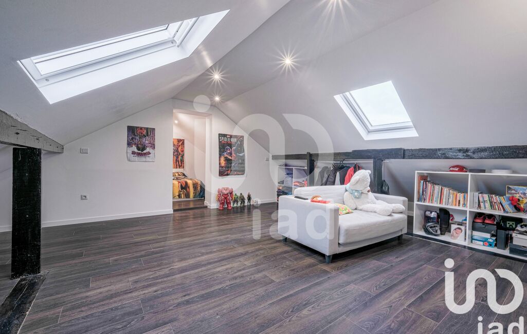 Combles aménagés : 22 m² divisés en chambre, bureau et salle de jeux.