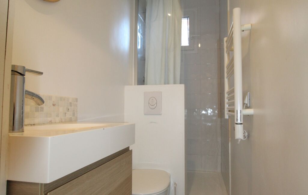 Il se compose d’une entrée, d’un séjour parqueté avec cuisine ouverte (US) d’environ 18 m², d’une grande chambre de plus de 12 m², ainsi que d’une seconde chambre / bureau de 7,20 m². Une salle d’eau avec WC complète ce bien.