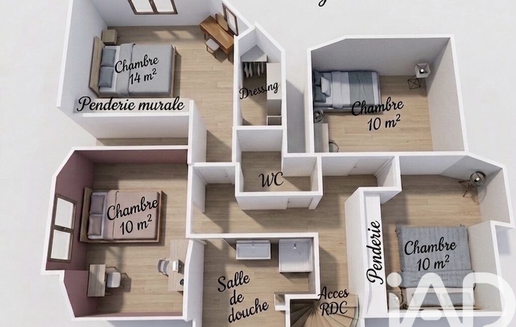 • Un palier desservant 4 belles chambres (de 10 à 14 m²), dont une avec son propre dressing !