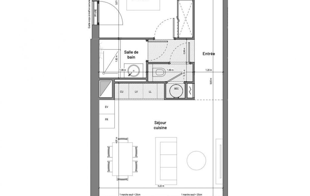 Une pièce de vie lumineuse avec séjour / cuisine ouverte de 22,çm2