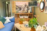 L'accès au pont inférieur se fait par un large escalier découvrant un double séjour avec sa cuisine ouverte chaleureuse.