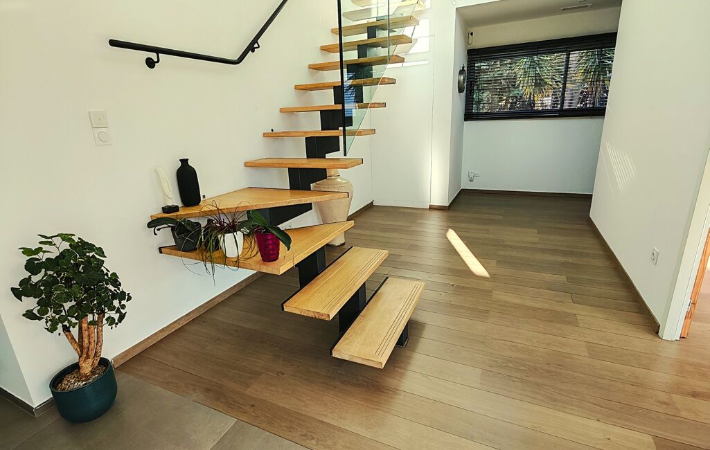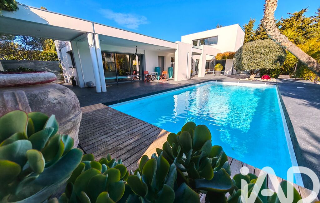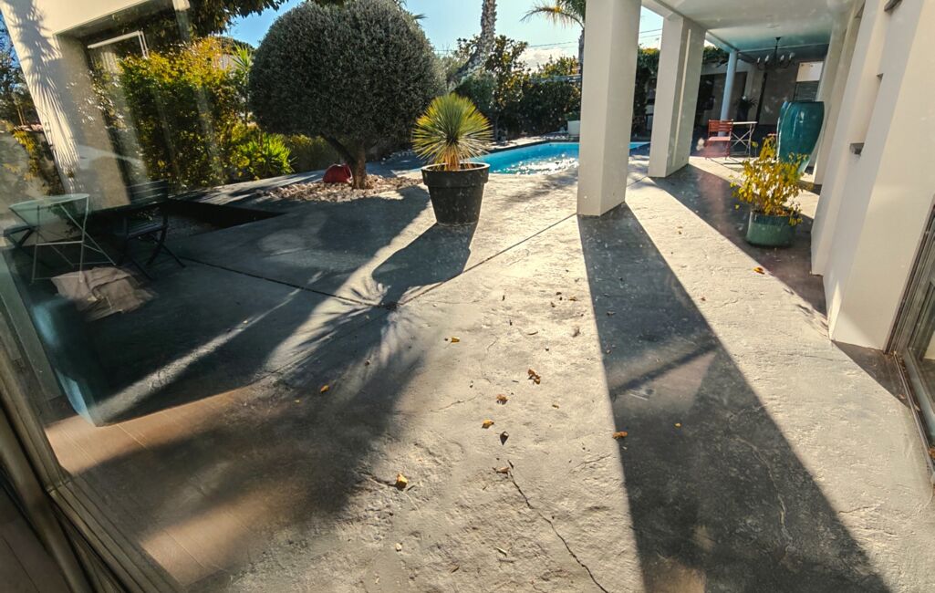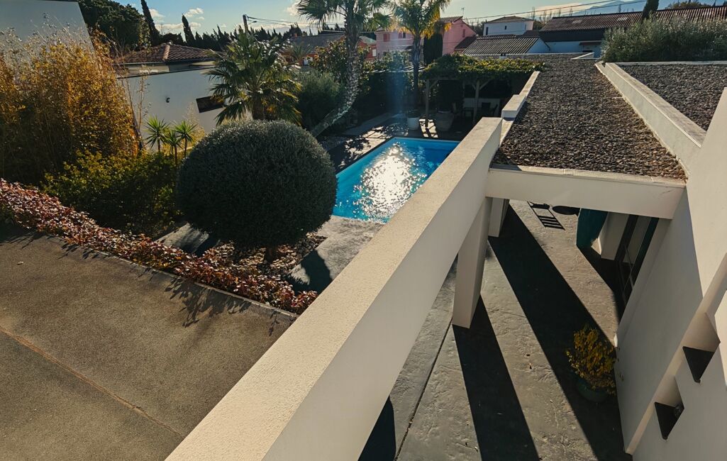 iad France - Yoan Roudon vous propose: Saint Féliu D'Avall – Sur un Secteur Prisé de la commune à 10 minutes de Perpignan – Magnifique Villa d'architecte 4 faces de 180m² sur une parcelle de 1140m² environ, 3 Chambres dont 2 de Plain-Pied – Terrasse – Piscine – Garage de 50m².