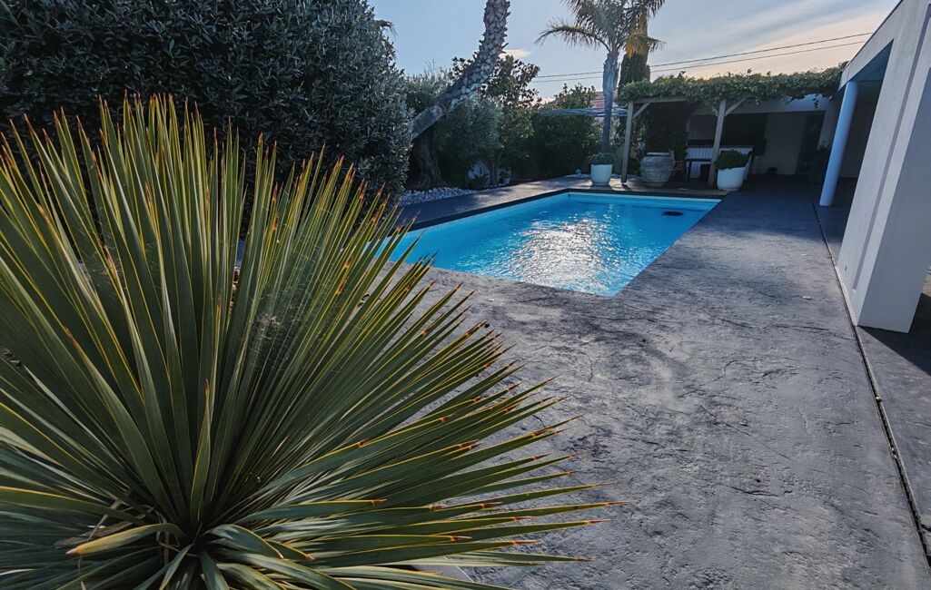 SES ATOUTS : Villa aux Volumes et Prestations généreuses – 3 Chambres dont 2 Chambres de Plain-pied – 2 salles de bains – Cuisine entièrement équipée – Un système d'enceinte BOSE encastré dans les plafonds. Extérieur Agréable - Jardin et Cuisine d'été avec une Piscine a l'eau de SEL et chauffée – Stationnement facile – Portail et Garage Motorisés - Secteur Résidentiel Prisé – Proche de toutes Commodités, Commerces, Ecoles et Transports.