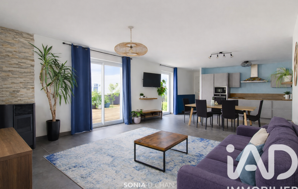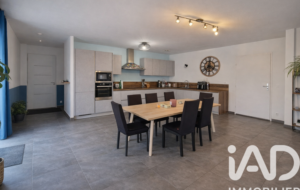 Elle offre 92 m² habitables (111,58 m² au sol) avec une belle pièce de vie de 38 m² et cuisine ouverte aménagée, 3 chambres confortables, salle de bain et 2 WC. Garage avec accès direct.
