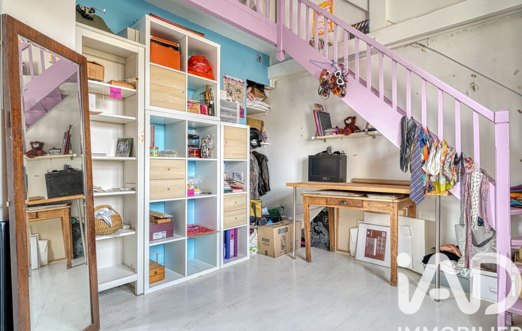Elle se compose au RDC d'un grand espace de vie avec poêle à bois et cuisine ouverte totalisant 38m², d'une chambre actuellement aménagée en bureau.