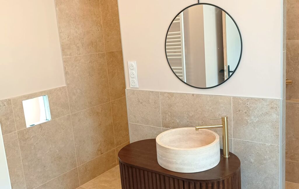A l'étage, 2 chambres spacieuses dont une possède un dressing privatif. Une salle d'eau magnifique avec double douche.