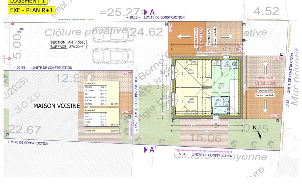 • Superficie terrain : 274 m²