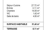 Surface habitable totale : 51,40 m² environ