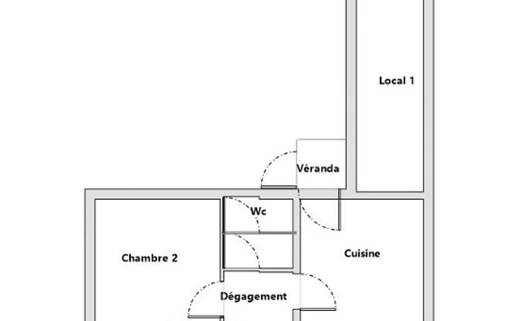 D'une superficie de 59m², la maison se compose d'une entrée desservant une pièce de vie attenante à la cuisine à aménager, 2 chambres avec placard intégré, une salle d’eau, un wc, une petite véranda et une dépendance de 13m².
