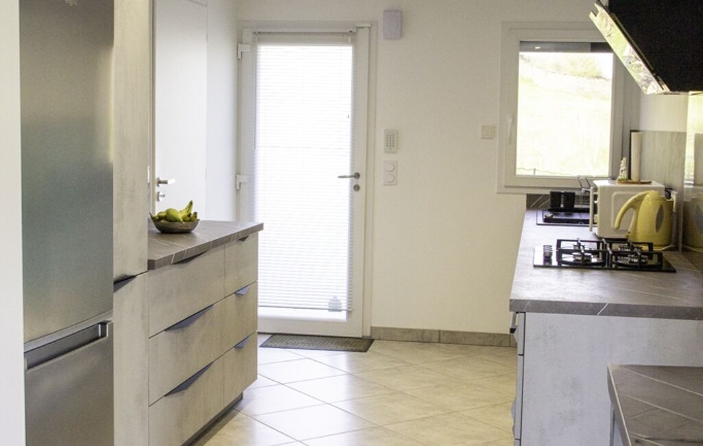 Au rez-de-chaussée, vous trouverez une cuisine fonctionnelle, moderne et entièrement équipée, un salon lumineux, un espace de rangement intégré sous l'escalier, une chambre baignée d'un puits de lumière, un WC et une magnifique salle de bain design également baignée d'un puits de lumière.
