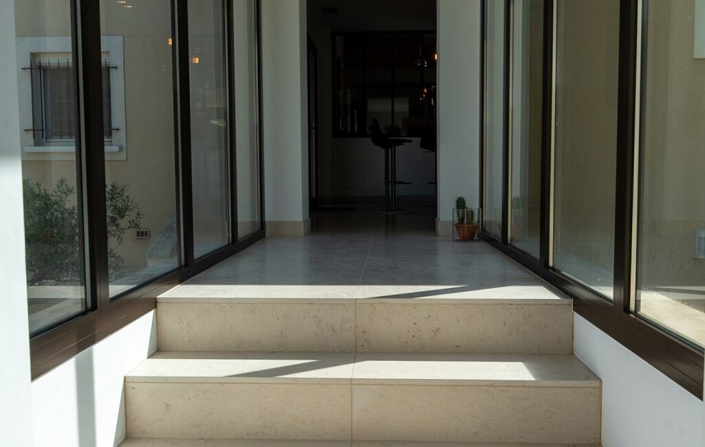 - une passerelle vitrée conduit à la buanderie et au garage
