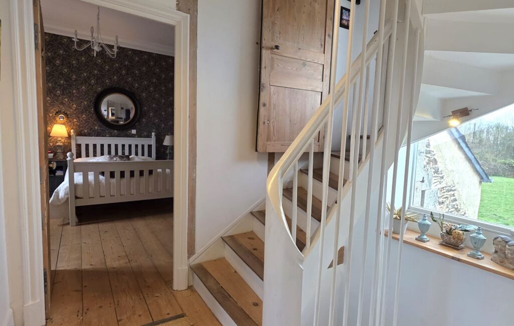 Le premier étage accueille une salle d'eau avec douche à l'italienne et WC, deux vastes chambres dont l'une dispose d'une salle de bain privative.