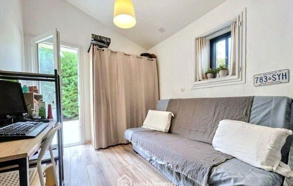À l'extérieur, un jardin paysager de 580 m², joliment arboré, accueille une piscine chauffée, un espace cuisine d'été et une buanderie indépendante, le tout sans vis-à-vis.
