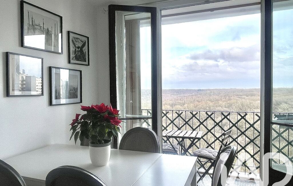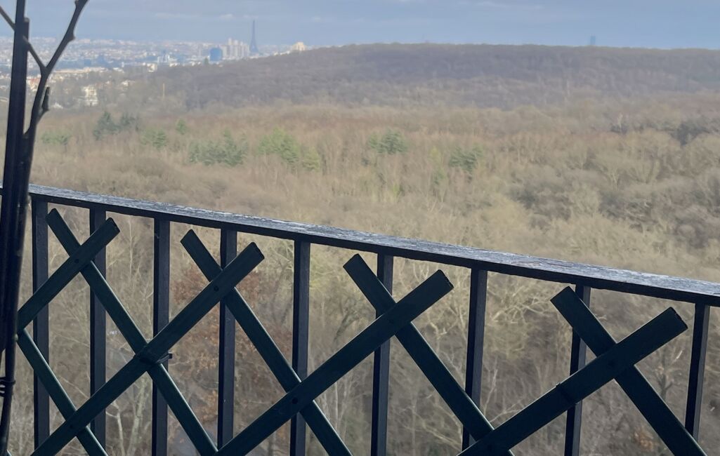 iad France - Djamila Théodore vous propose: Appartement de 4 pièces avec une vue imprenable sur Paris et La Défense. Chaque pièce donne l'impression d'être perchée au dessus des arbres de la forêt de Meudon.