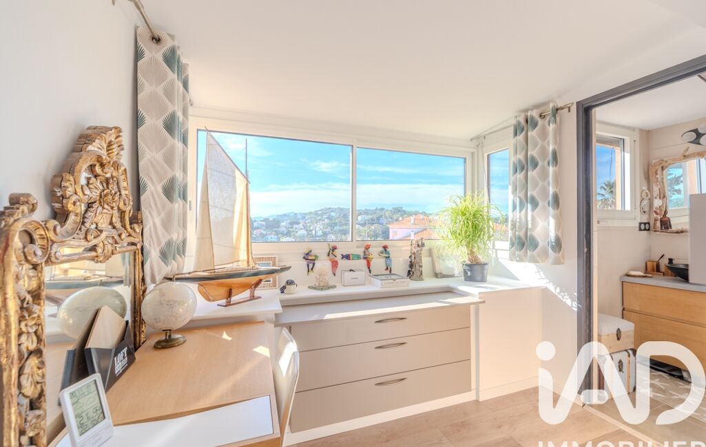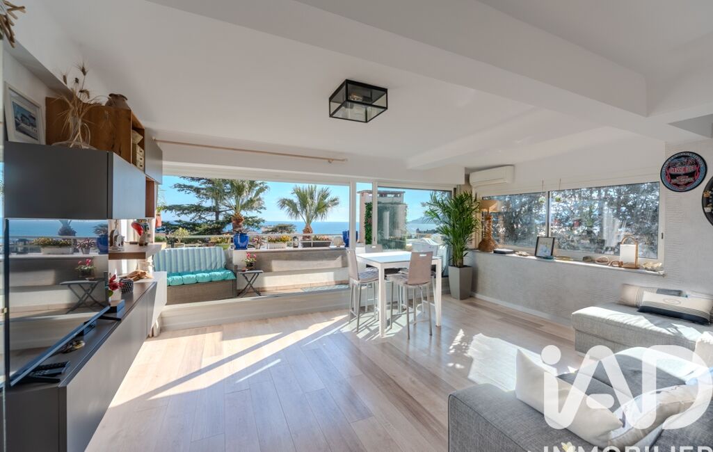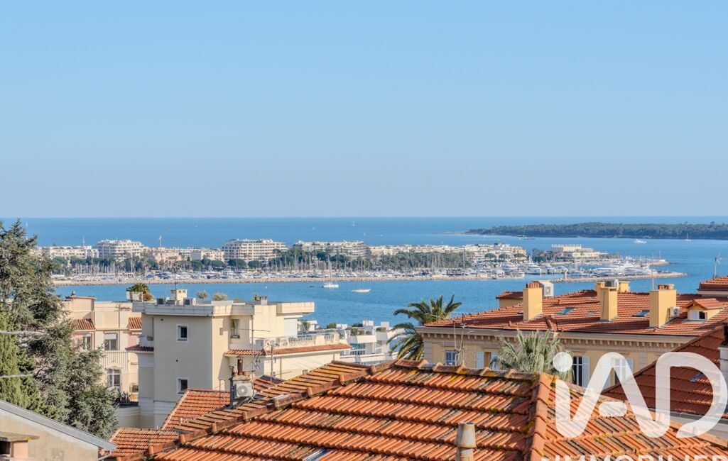 iad France - Angéla Gest vous propose: RARE. VUE MER PANORAMIQUE EXCEPTIONNELLE. COUP DE COEUR POUR CE 2 PIÈCES 42 m2 + 7 M2 TERRASSE SUD + GARAGE MOTORISÉ DE 20 M2. SECTEUR STANISLAS/SUQUET. CALME. SANS VIS-À-VIS. Commerces, Plages, transports en commun, Suquet, Forville, à pied ! Idéal résidence principale, secondaire ou investissement locatif. Bien rénové, au dernier étage d'une maison de ville. DESCRIPTIF : une Entrée, une cuisine récente ouverte sur une pièce de vie lumineuse et sa terrasse avec vue imprenable du Palm Beach jusqu'à la Baie de Théoule-sur-Mer. Vue sur la mer, les îles de Lérins, le Port Canto, le Suquet et le château de Vallombrosa , une chambre astucieuse avec douche italienne et toilettes, offre une vue dégagée sur la Croix des Gardes. DOUBLE VITRAGE. BAIES VITRÉES. CLIMATISATION. FAIBLES CHARGES.