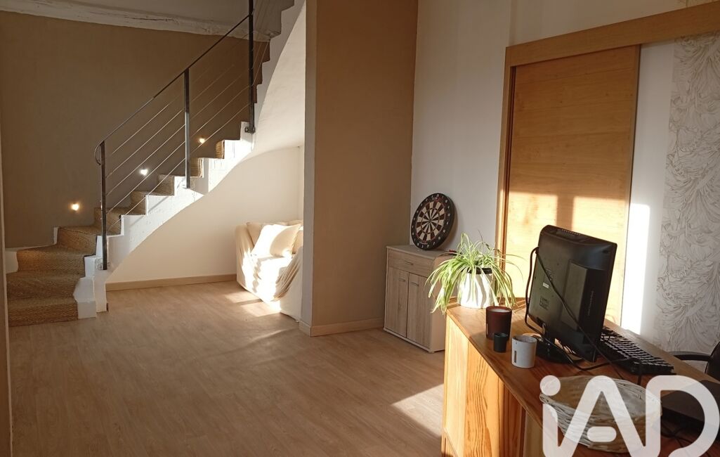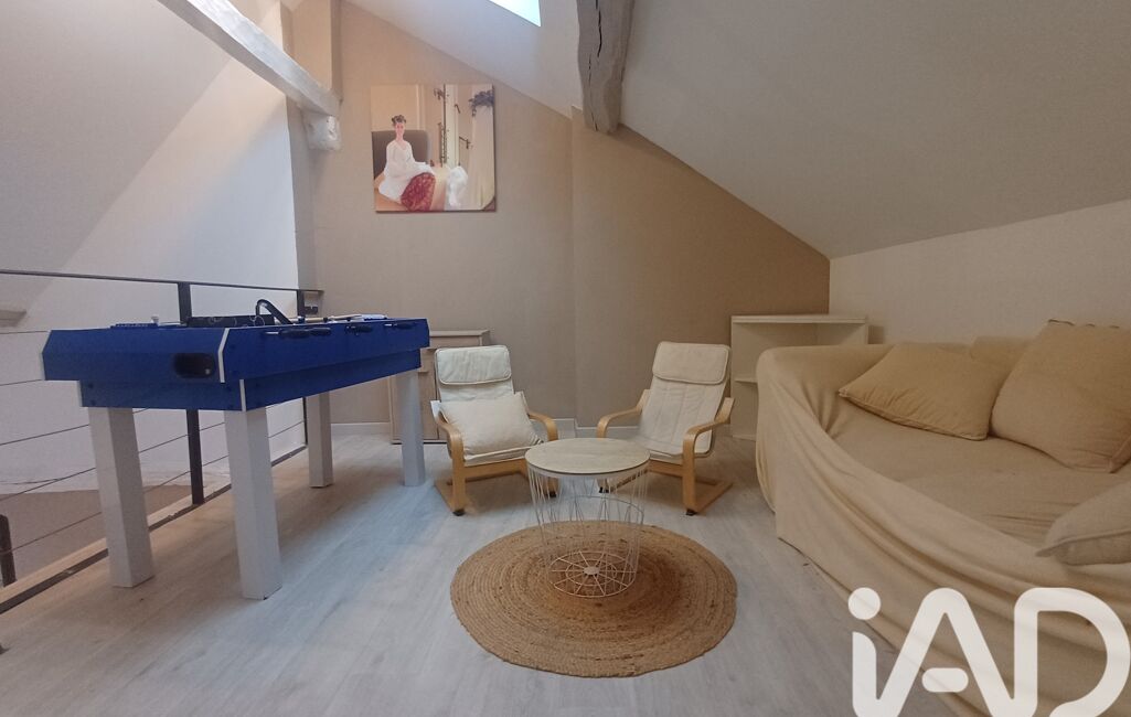 À l’étage, une mezzanine distribue trois chambres et une salle d’eau, récemment rénové.