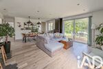 Dès l’entrée, vous découvrez une superbe pièce de vie lumineuse de 35 m2, chaleureuse grâce à son poêle à pellets moderne, ouverte sur une cuisine entièrement équipée avec îlot central de 10 m2.