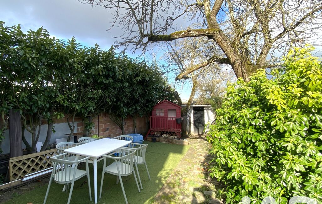 Le jardin clos de 172 m² accueille deux abris de jardin, un stationnement pour véhicule ainsi qu'un espace détente agrémenté d'arbres fruitiers.