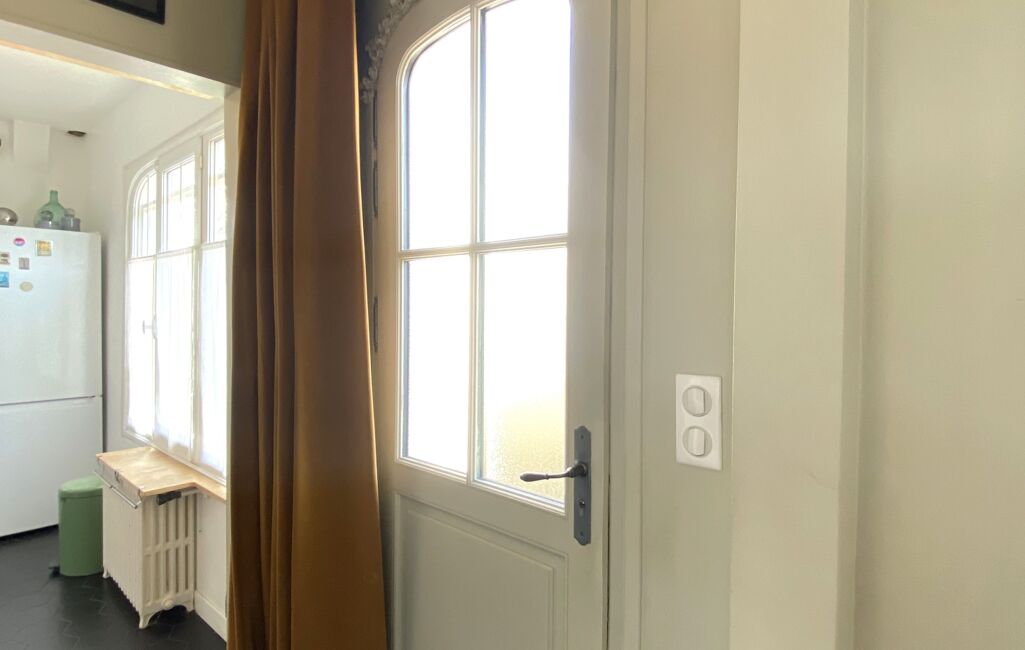 La cuisine aménagée bénéficie également d’une double exposition, apportant clarté et convivialité.
