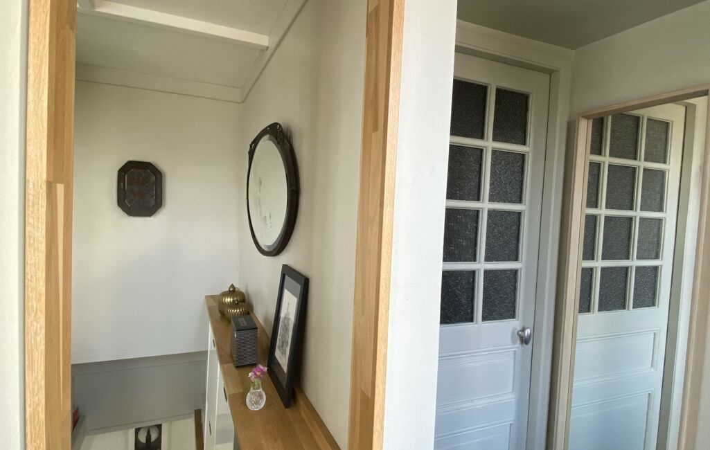 Dès l’entrée, vous découvrirez un séjour traversant baigné de lumière, agrémenté d’un poêle à bois et d’un surprenant espace vaisselier offrant un vaste rangement intégré.