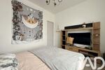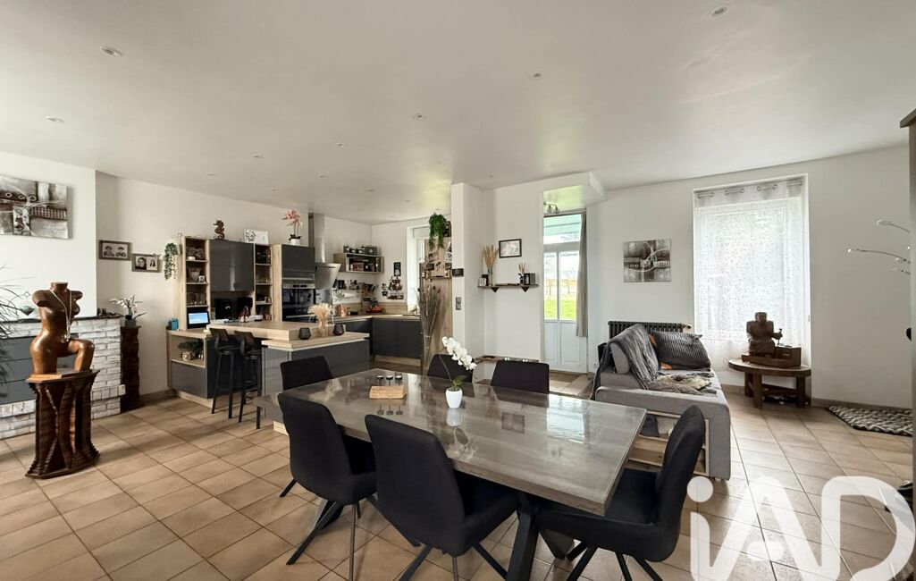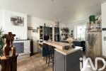 Implantée sur plus de 720 m² de terrain clos, la maison propose, dès l’entrée, un vaste espace de vie baigné de lumière grâce aux grandes ouvertures et à une belle hauteur sous plafond d’environ 3 mètres. Le séjour, le salon et la cuisine aménagée et équipée forment un ensemble convivial et chaleureux. La cheminée d’origine a été conservée, apportant du cachet à la pièce.