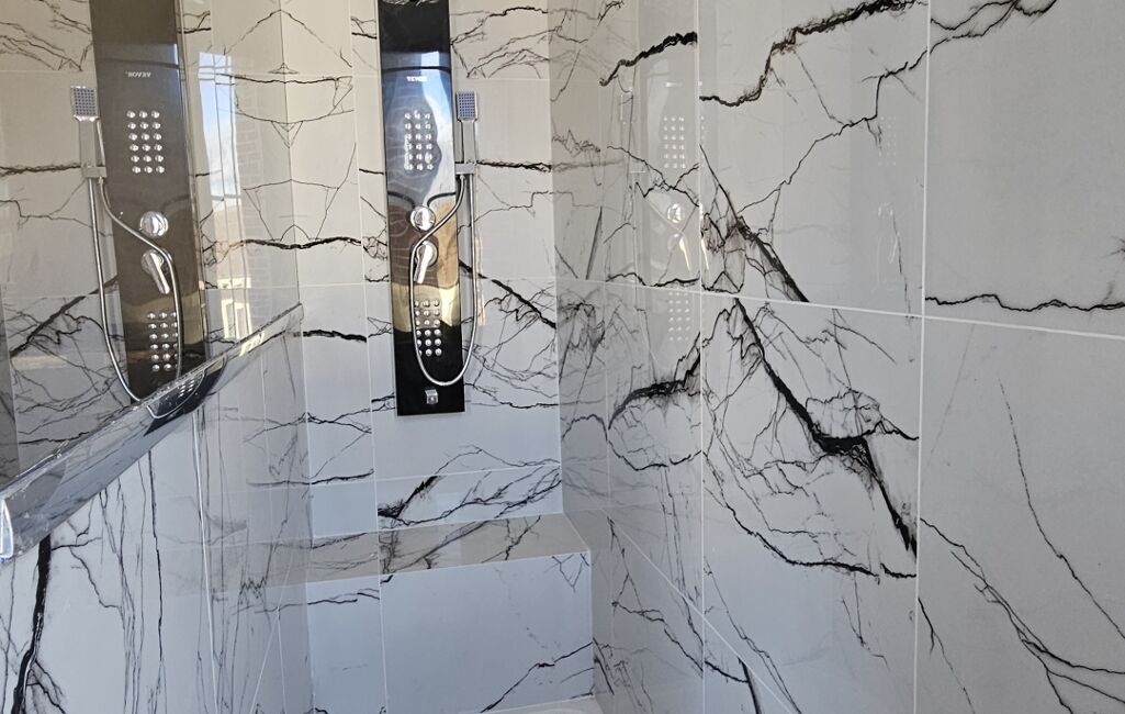 •Une suite parentale avec balcon, grande salle d’eau équipée d’une douche avec banc intégré et jets type balnéo, et dressing.