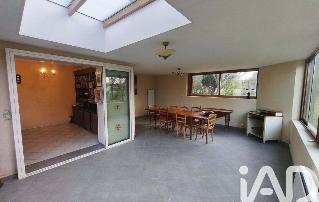 En face, une salle à manger SPACIEUSE donne d’un côté sur la cuisine et de l’autre côté sur l’extension/véranda LUMINEUSE, le tout avec accès à une TERRASSE SUD.