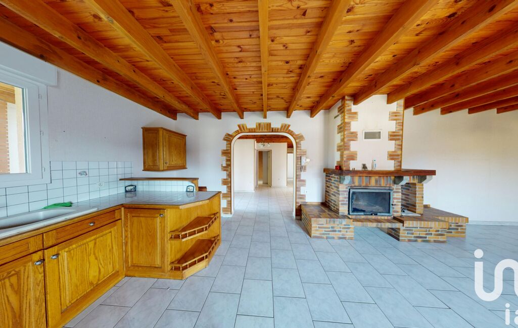 La pièce de vie de 42,9 m², spacieuse et conviviale, comprend une cuisine ouverte aménagée ainsi qu'une cheminée avec insert qui apporte une chaleur douce et agréable en hiver.