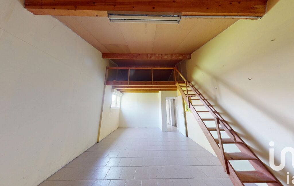 Le garage de 23 m², isolé et carrelé, est équipé d’une porte motorisée ainsi que d’une mezzanine, offrant un espace de rangement appréciable.