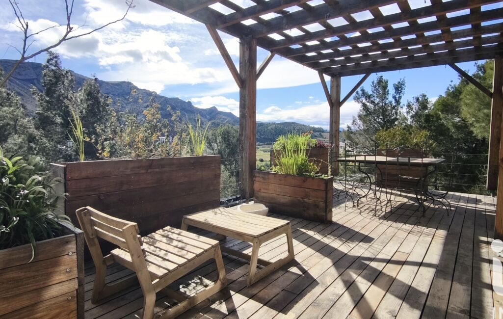 Ici, le regard se perd sur une vue panoramique remarquable, de la vallée du Fenouillèdes au mythique pic du Bugarach, en passant par le célèbre Train Rouge … le tout sans aucun vis-à-vis.