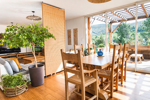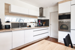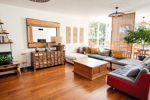 Une vaste entrée avec placards s’ouvre sur une belle pièce de vie baignée de lumière, exposée sud-ouest, avec cuisine moderne entièrement équipée, donnant sur une buanderie / cellier pour un quotidien pratique et bien organisé.