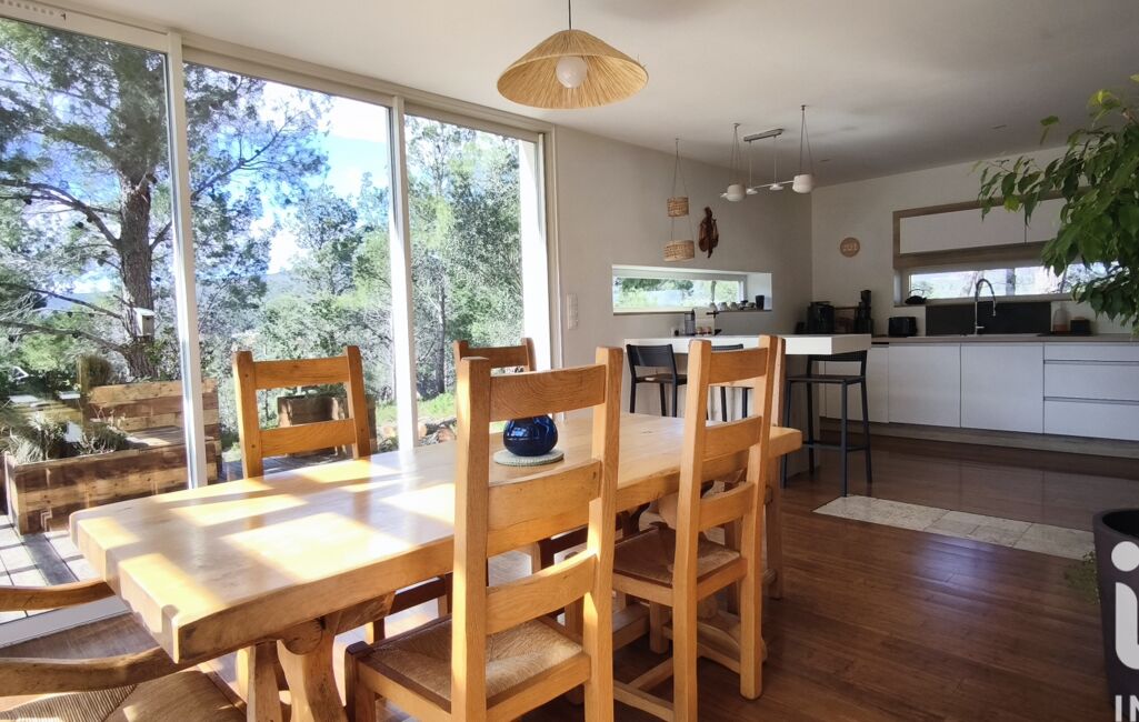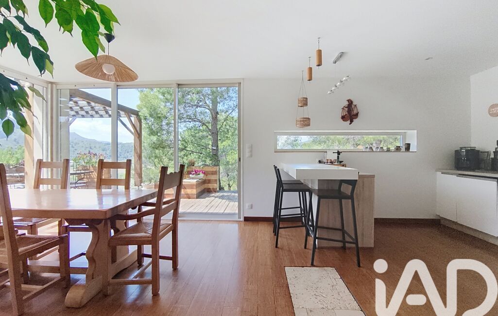 iad France - Laureen Grisneaux vous propose: Nichée au sommet d'une colline, au cOEur d’un bois classé de 5 000 m², cette villa moderne de plain-pied de 126 m² offre un cadre de vie rare dans un décor naturel exceptionnel. Une véritable parenthèse hors du temps!