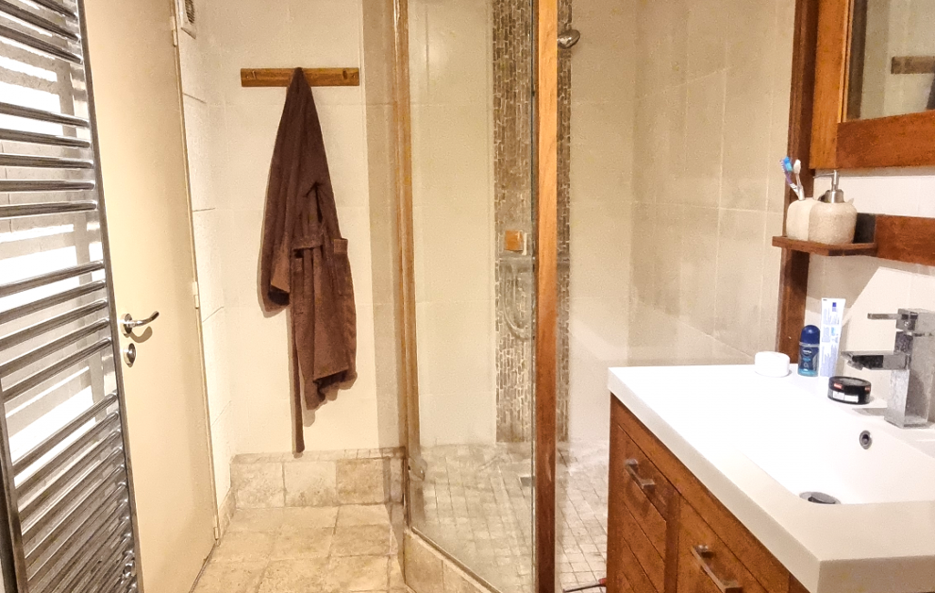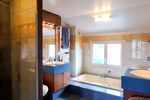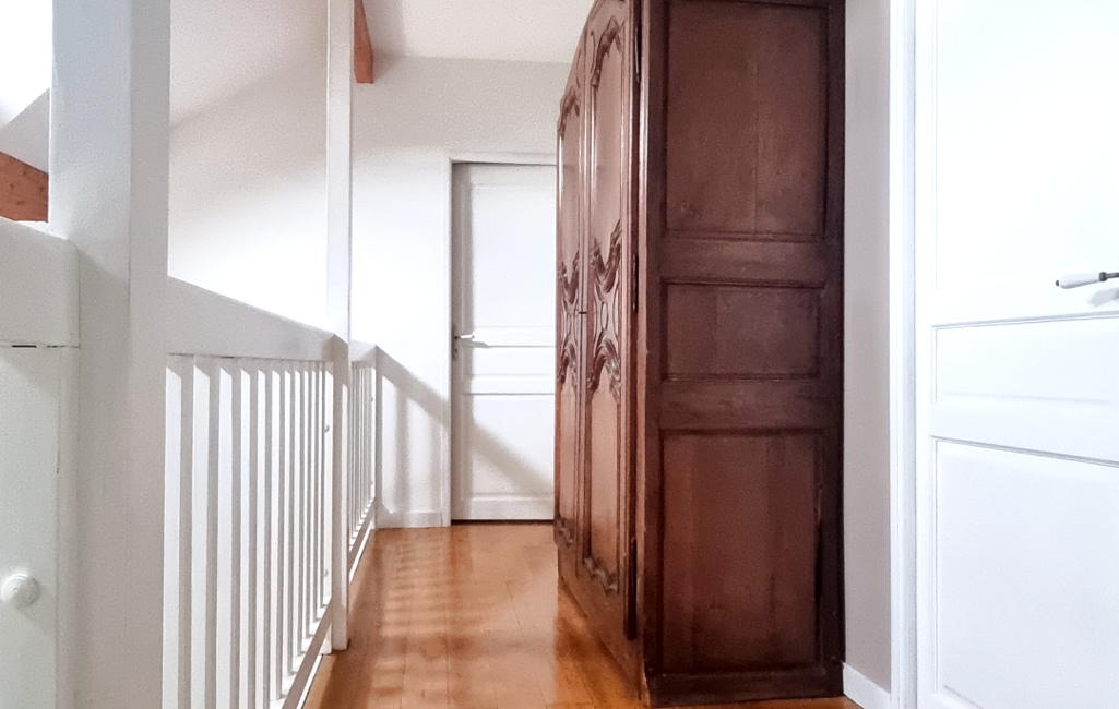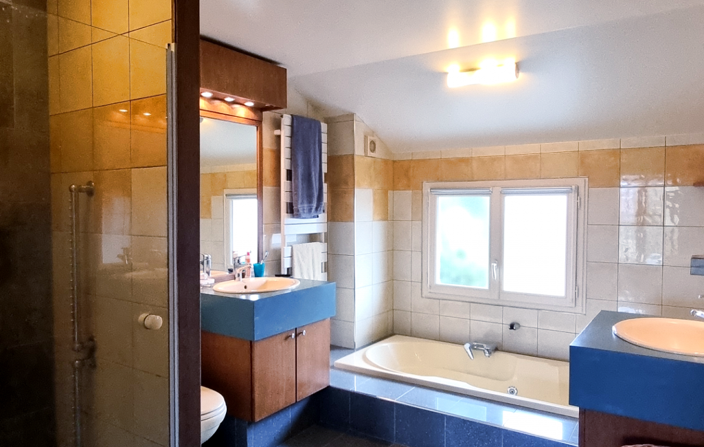 À l'étage, deux chambres, une salle d'eau et une superbe suite parentale climatisée avec salle de bain, douche, WC et balcon côté jardin.