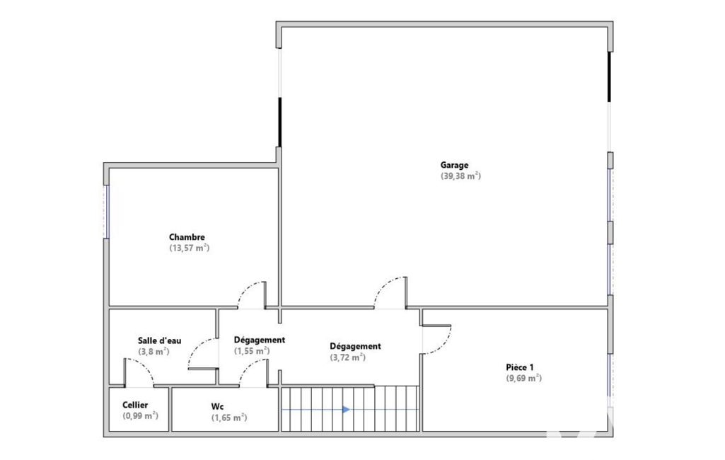 En sous-sol semi-enterré : garage 2 véhicules, chambre, salle d'eau, WC et espace de stockage.